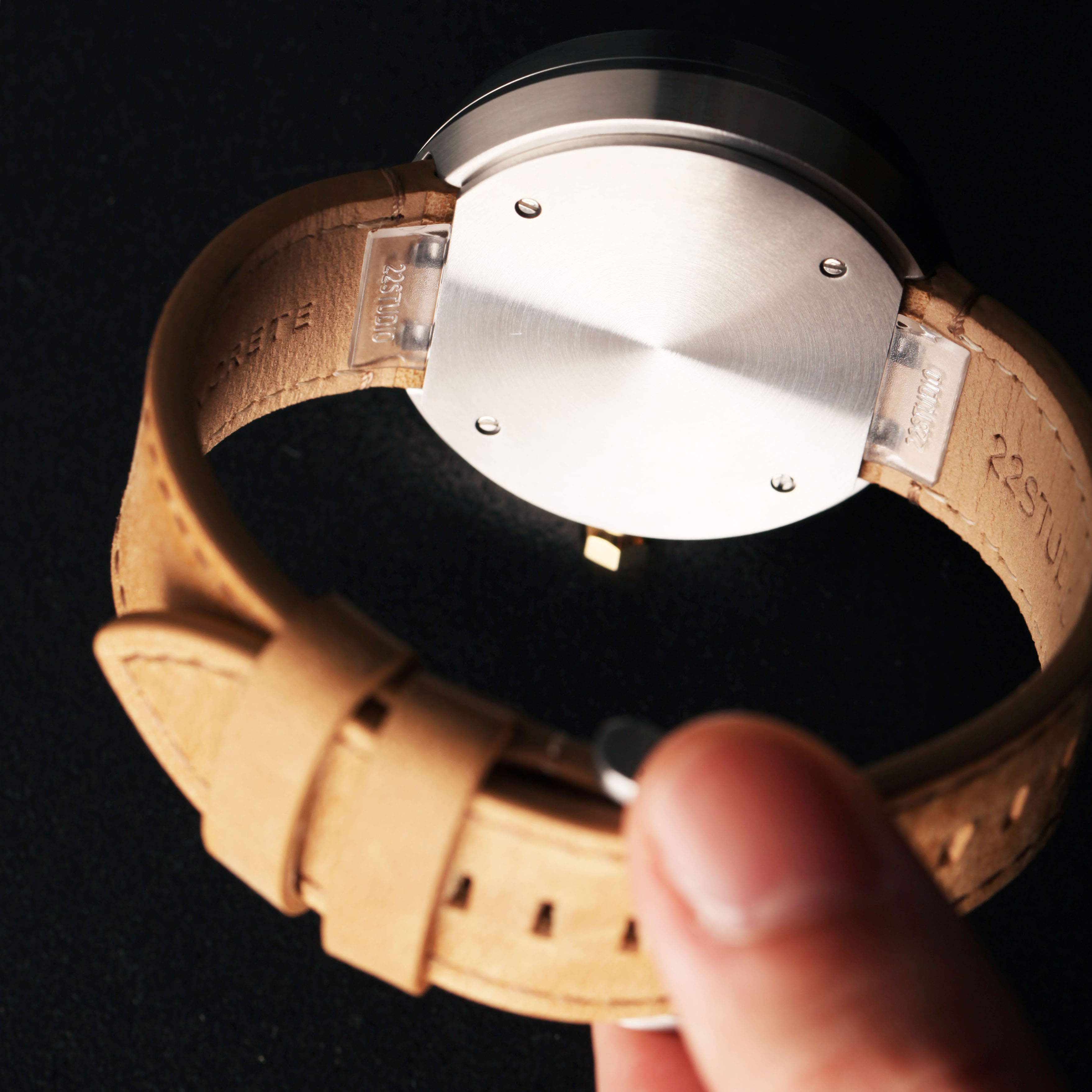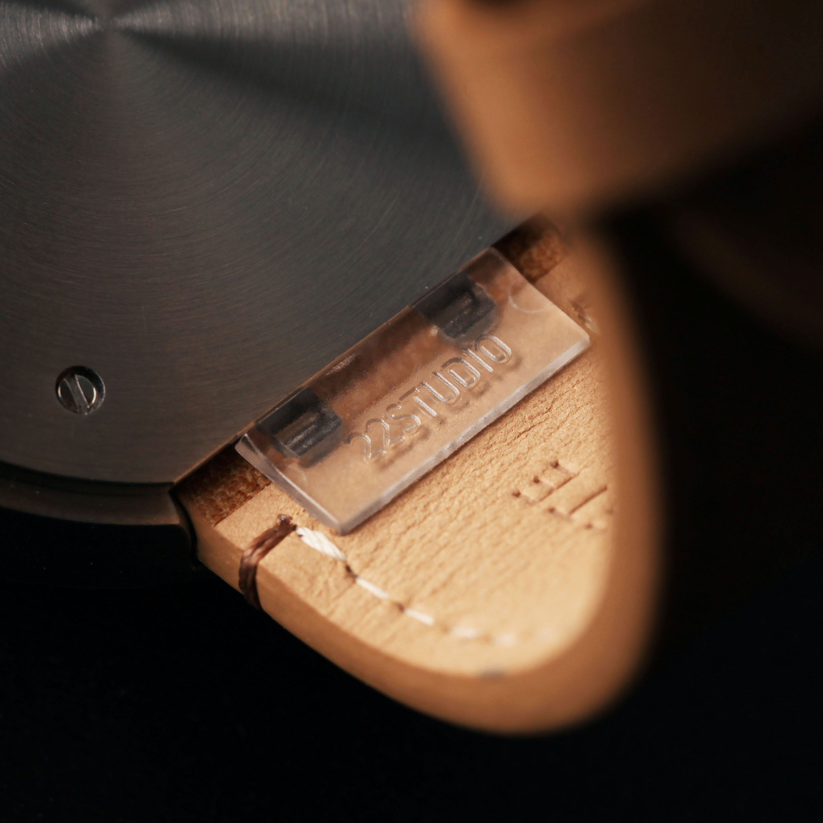 為了達到水泥錶重量與配戴舒適度的最佳平衡,一直是我們的心中石。不斷嘗試,終於開發22STUDIO腕錶專用「錶帶弧度固定器」,能夠把錶帶與錶本身固定出一個完美的橢圓形,使配戴感受大幅提升,更平衡、更舒適。首發獻給四度空間十週年經典升級版(皮錶帶專屬)。