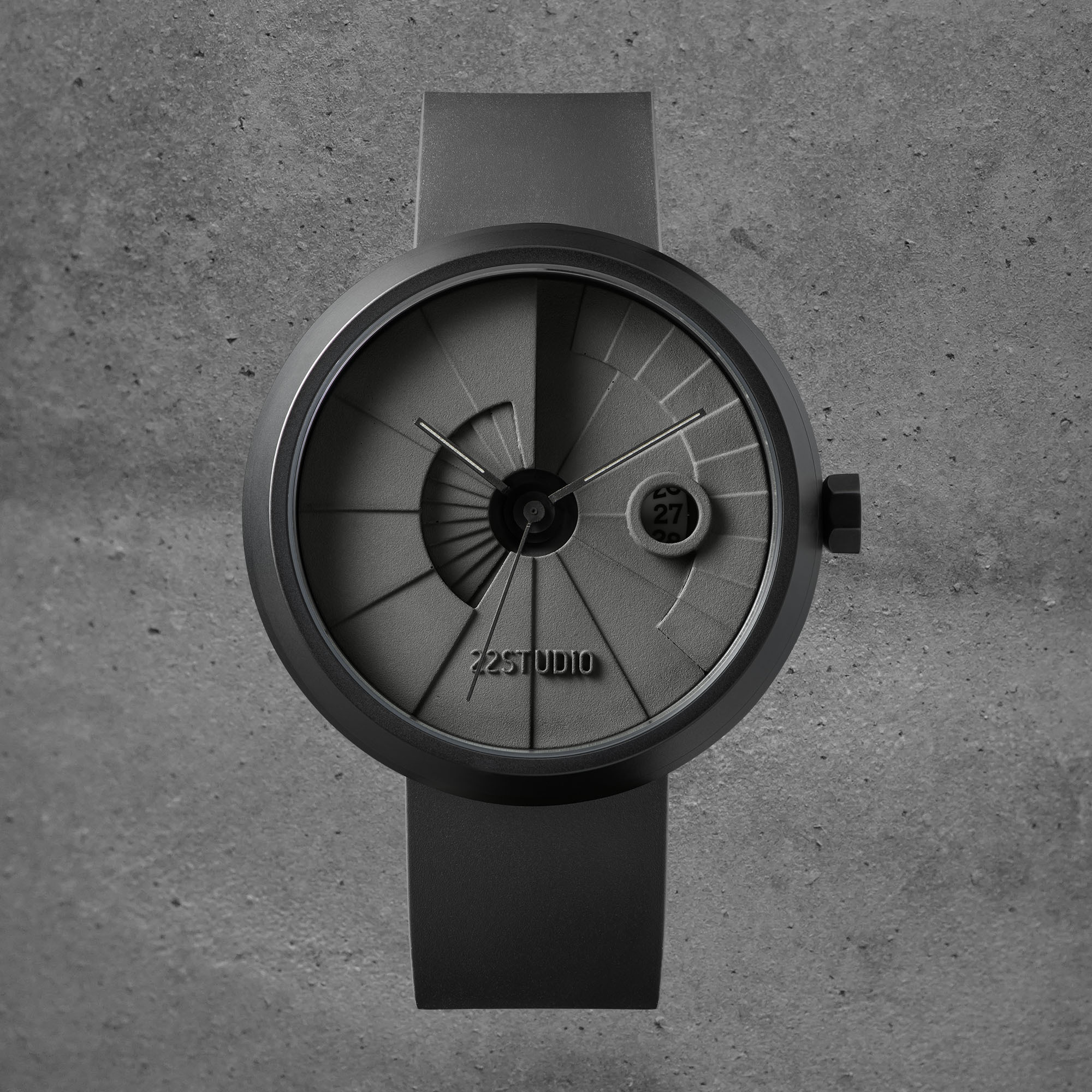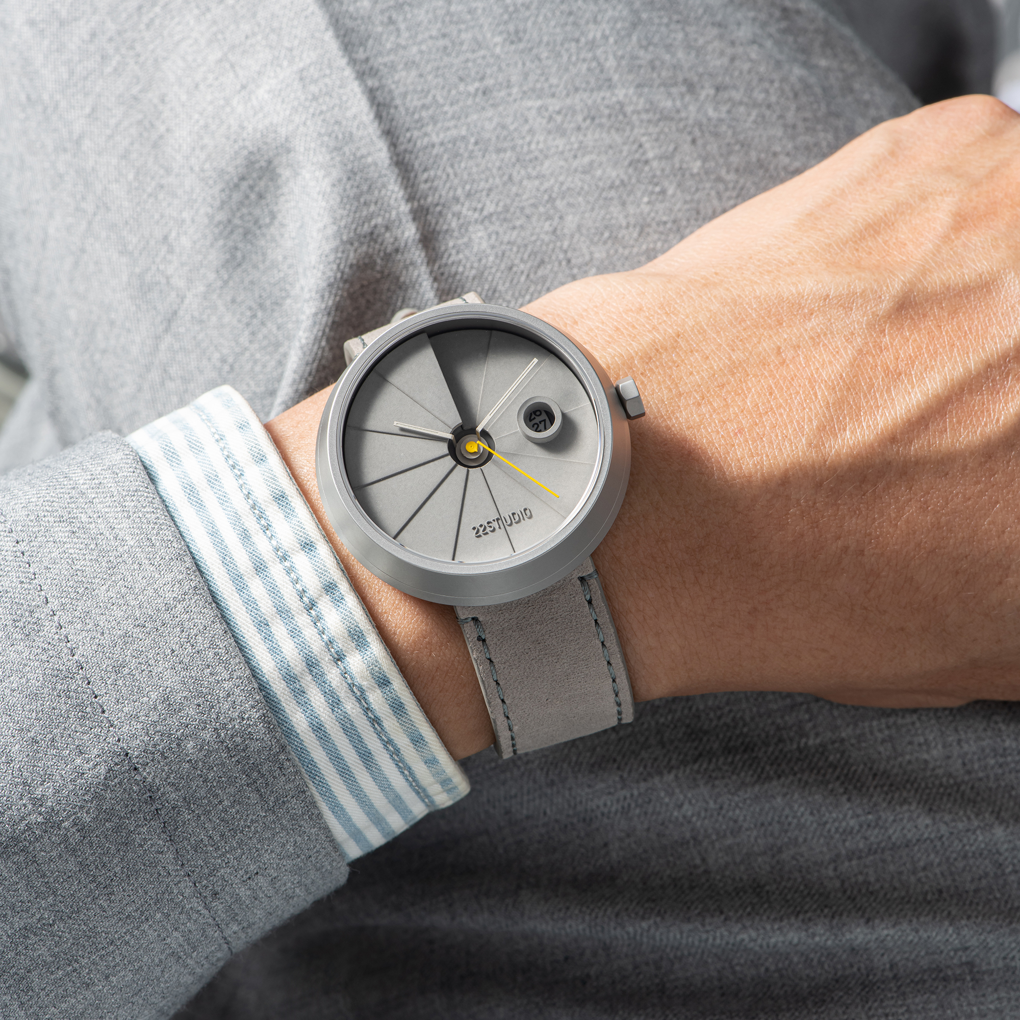 四度空間水泥腕錶-新款錶徑加大為44mm,視覺上更具存在感。厚度也修正為更輕薄,提升大錶配戴的舒適度。