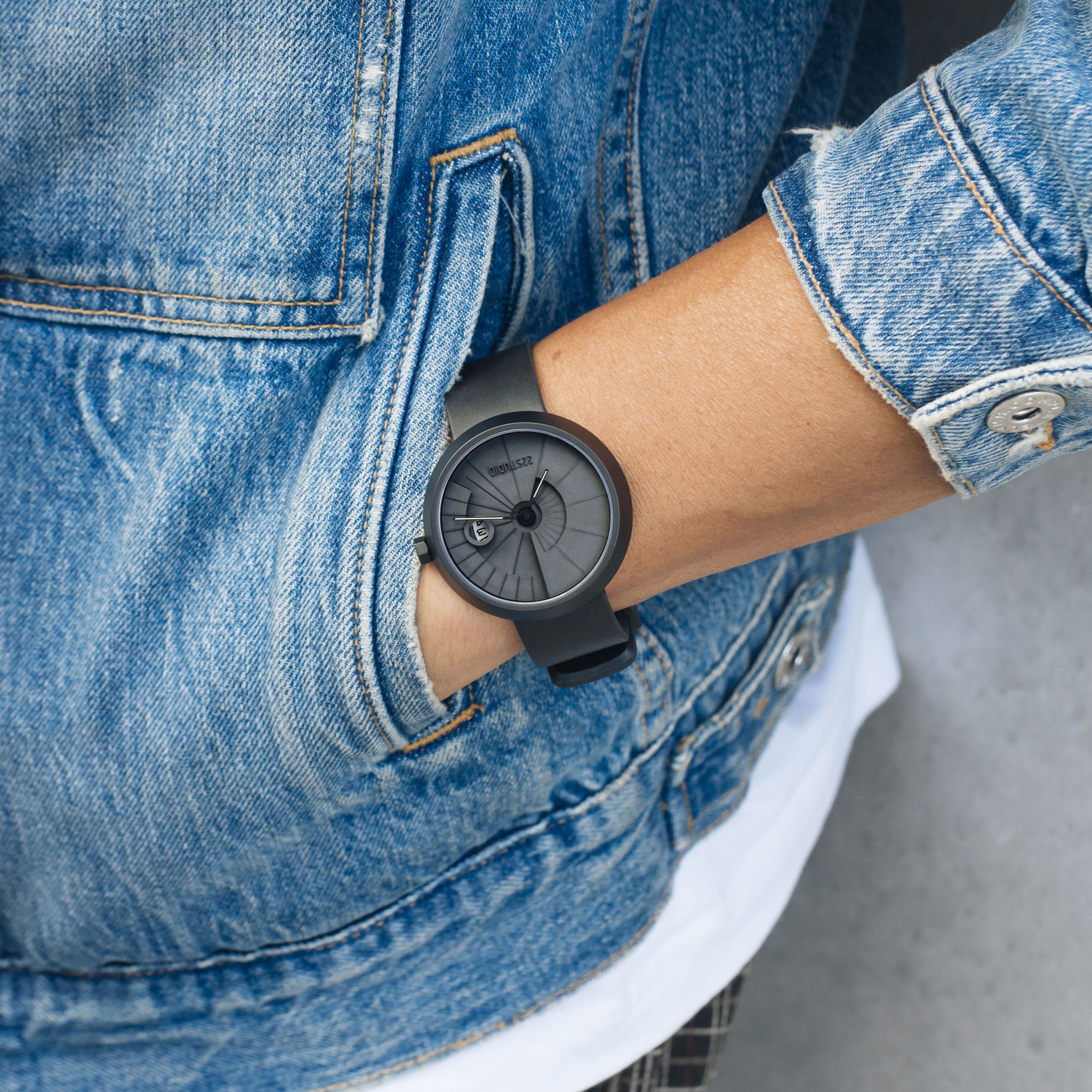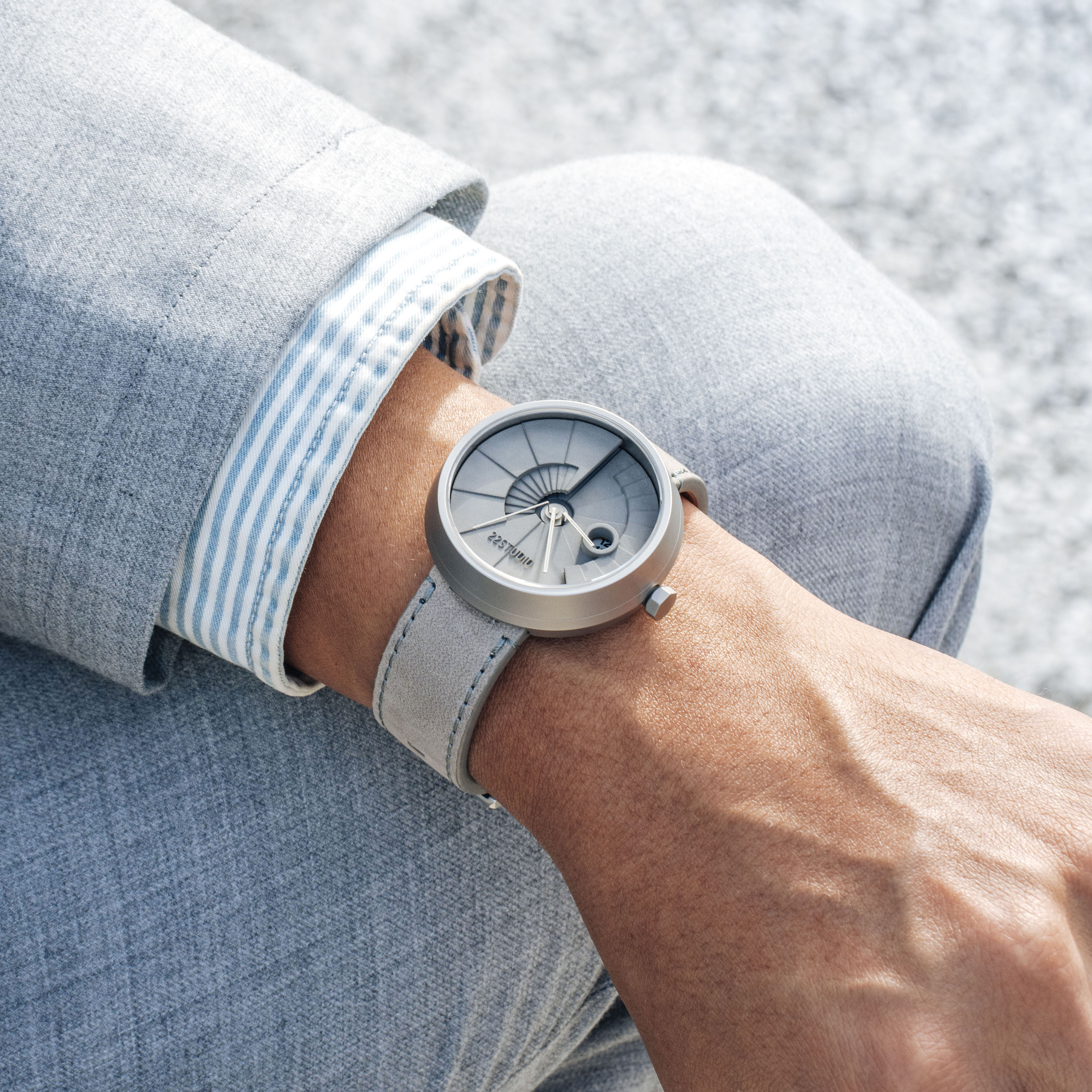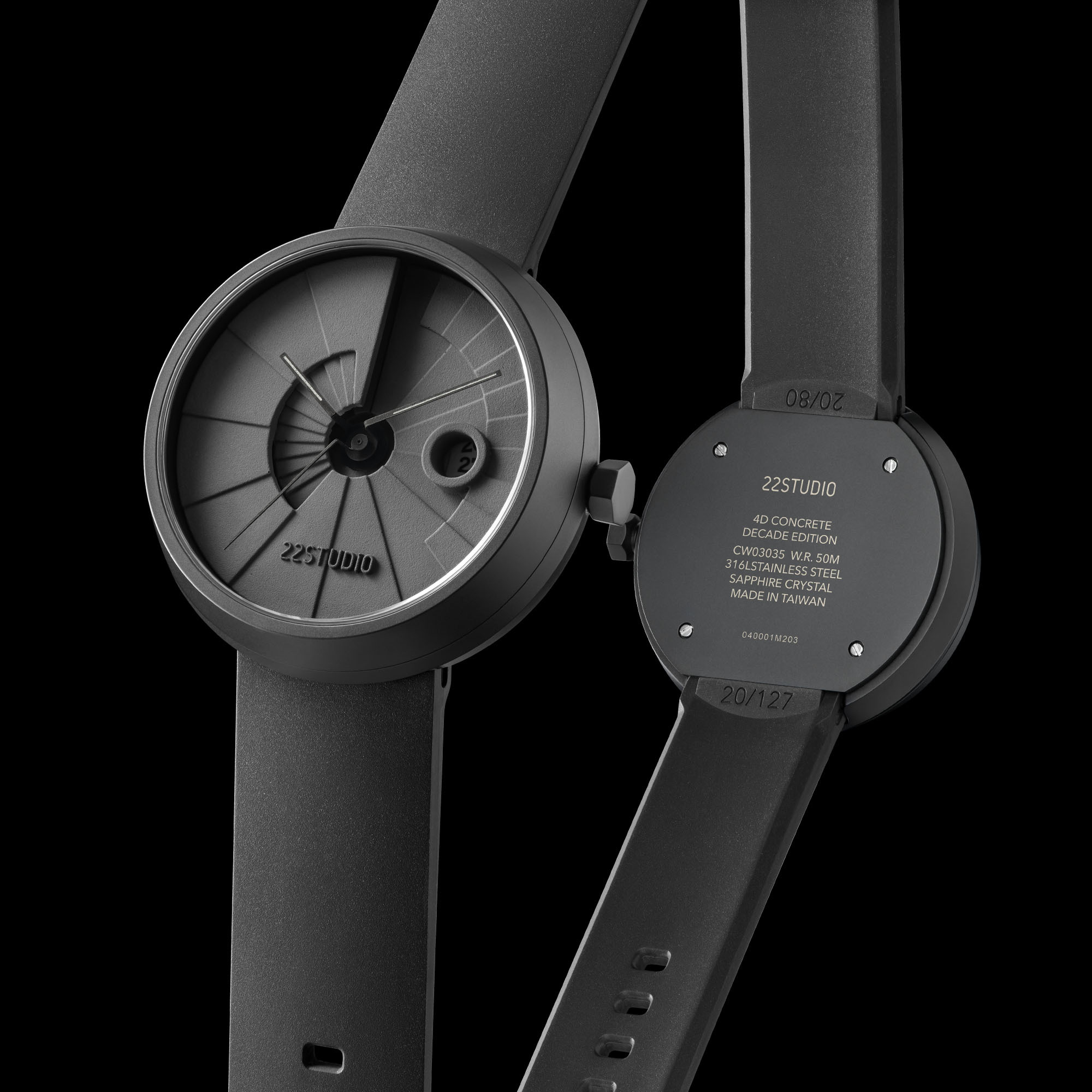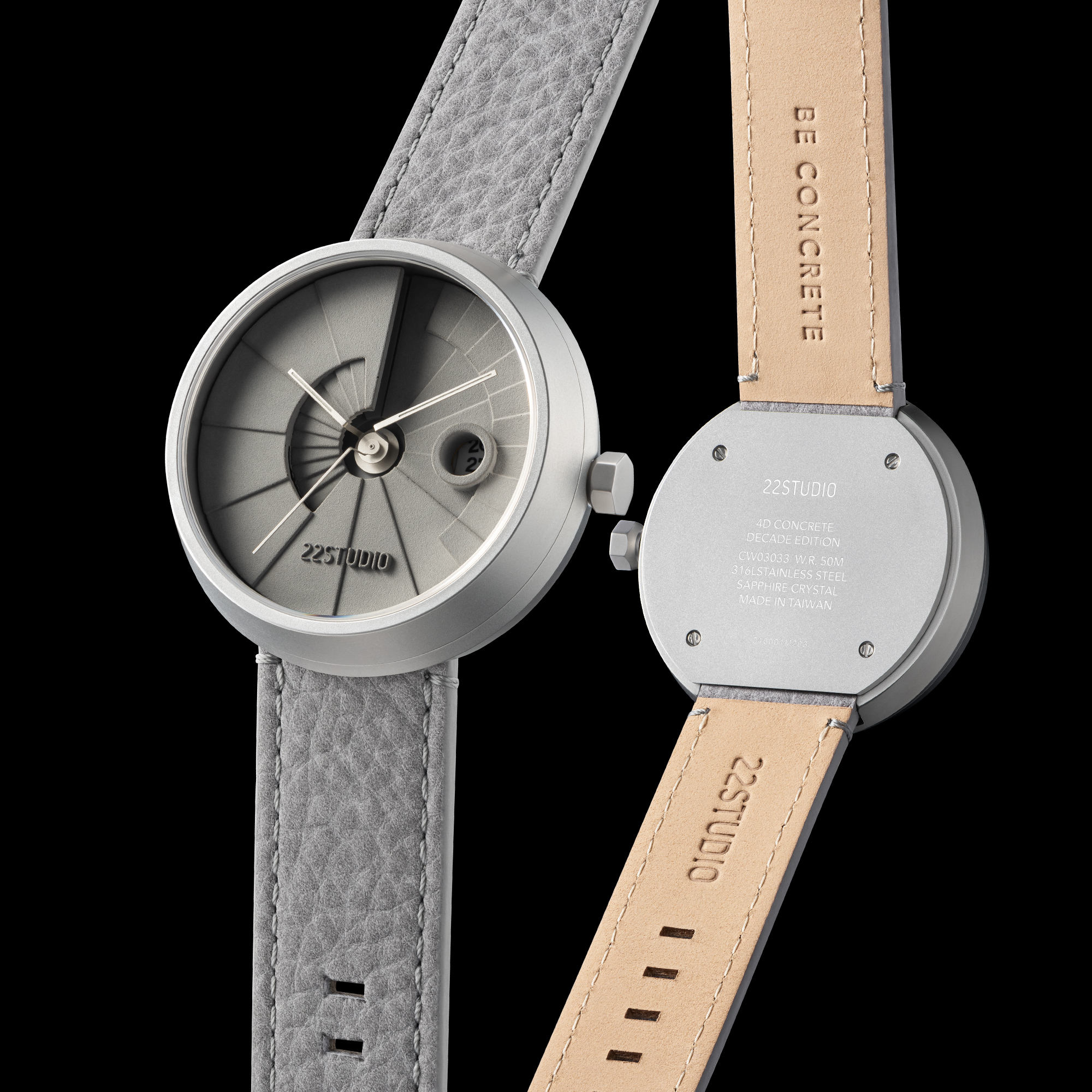 時間是否為人類的幻覺?過去、現在、未來是否同時存在,一直仍是未解之謎。「四度空間水泥腕錶-十週年紀念版」的全新設計正是對此一概念的提問。