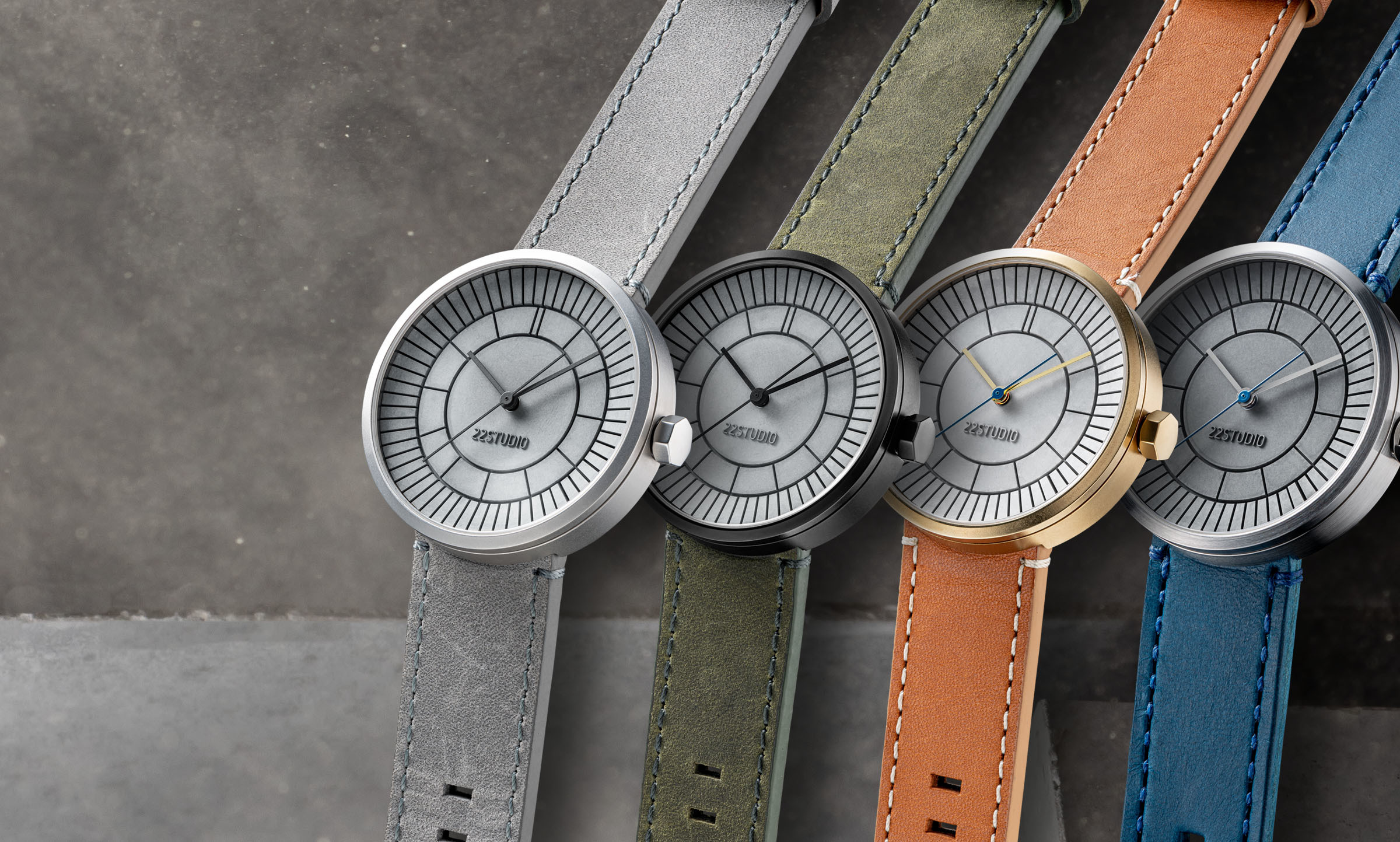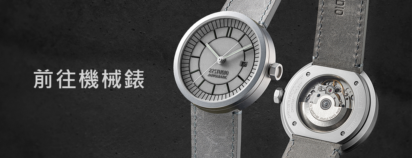 從【四度空間】系列開始,22從沒停止探求「建築、時間、空間」三元素的關係。全新的【分格水泥錶】是 22STUDIO 第二個手錶系列,取壕戰軍錶的古典特色,改以現代建築水泥工法,是全新概念的都會腕錶。