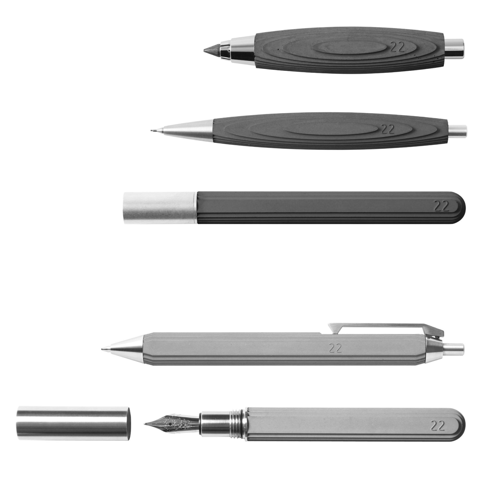 22STUDIO全系列書寫工具幾乎都使用德國SCHMIDT零件,鋼筆筆尖與吸墨器、鋼珠筆筆芯、原子筆筆芯、自動鉛筆機構等等,穩固扎實,是市面上可以採購到品質最高的零件。