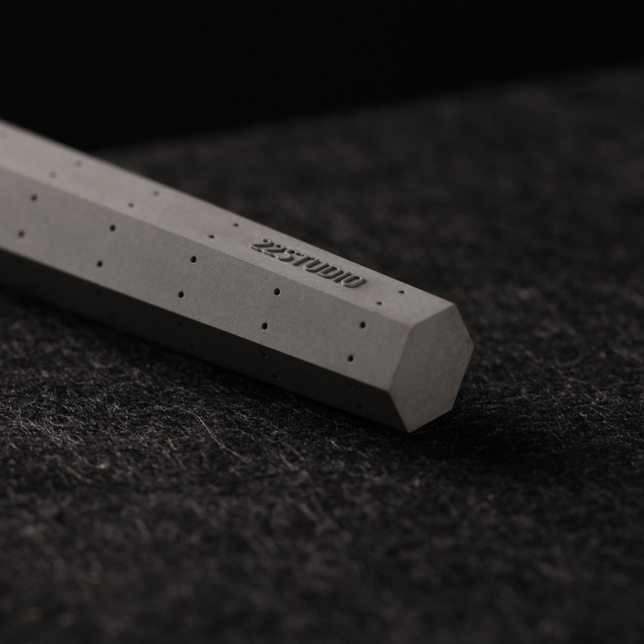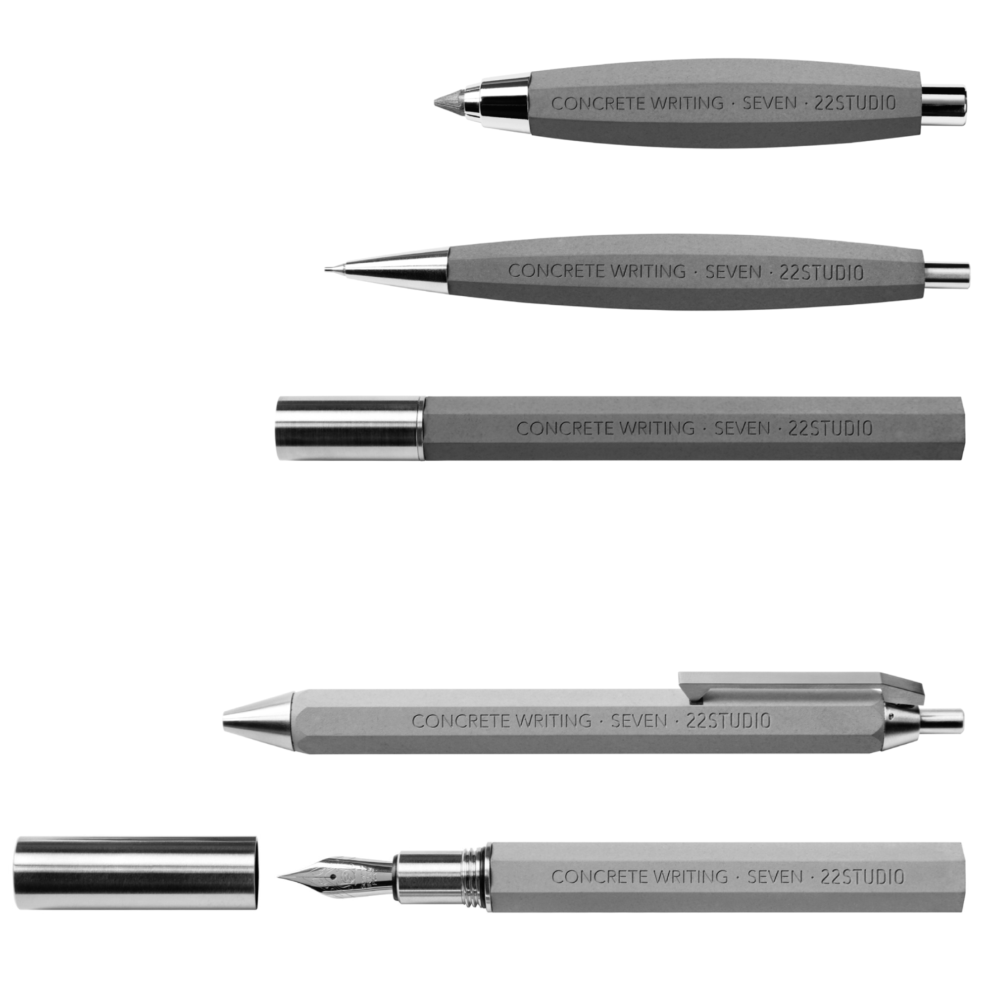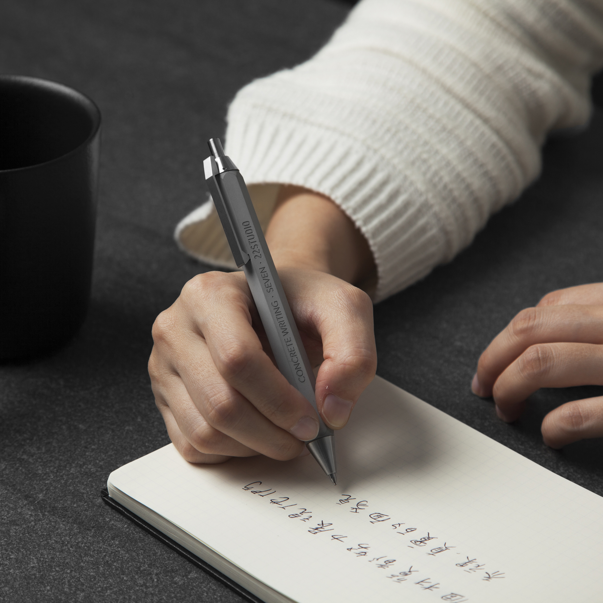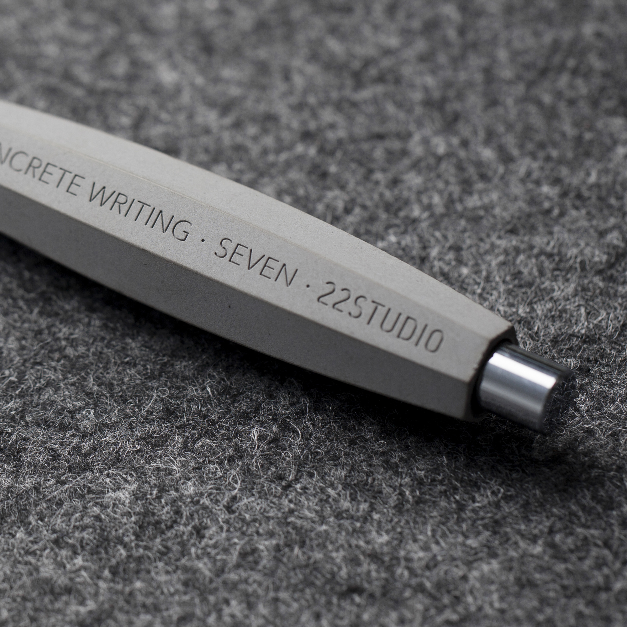 嘗試把「時間」元素帶入書寫工具── 七,現代生活的象徵數字。我們的時間概念被人工切割成七的倍數,一週七天,循環不已。/ 七邊系列 / 搶眼的大塊面,大面積地呈現出水泥的自然紋理,提供絕對舒適的握持感受。