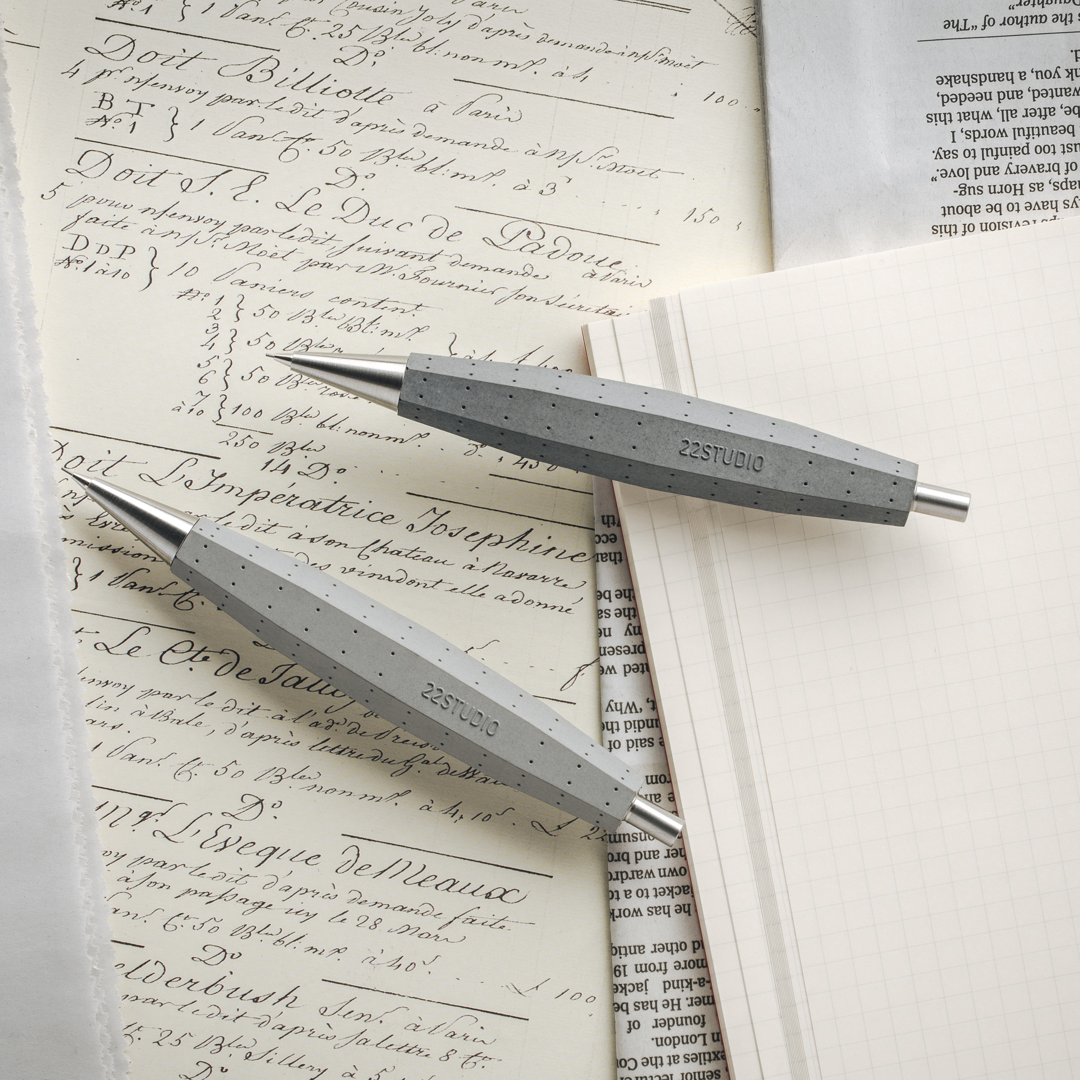 22STUDIO水泥書寫,同系列二入一組享有8折優惠!系列內共有五種筆款選擇,十種搭配:鋼筆(F/M尖)、原子筆、鋼珠筆、繪圖鉛筆及自動鉛筆。我們會將您選擇的同系列任兩款書寫工具,置於手刷上色的灰紙版禮盒內,供您送禮或自用。