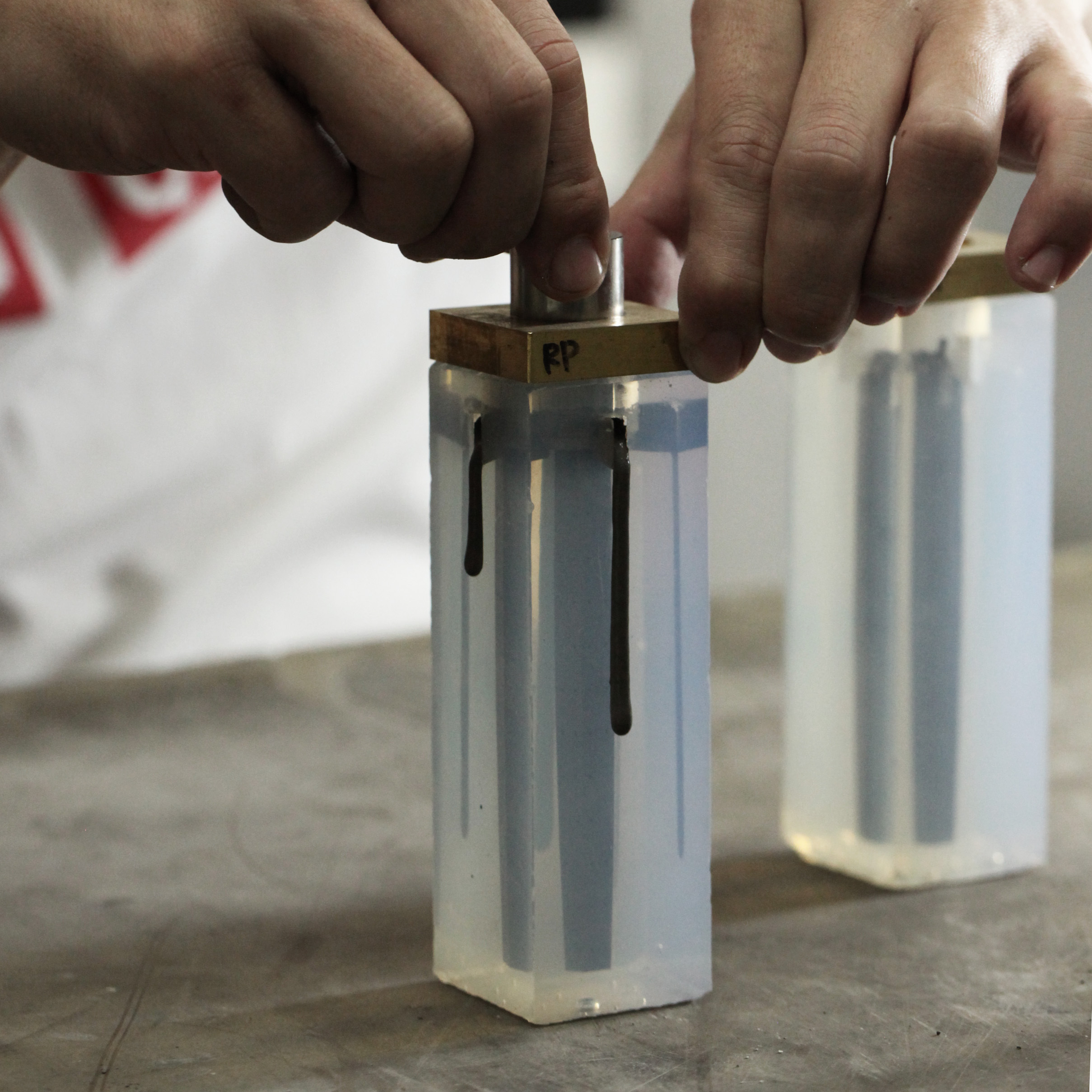 什麼是「熟成水泥」?水泥剛剛凝固成型時,強度還不足,工程上還需要經過「養護」手續:持續的提供水份,讓水與水泥充分進行「水合反應」以達到預定強度,但供水的過程往往會造成白色水痕、乾裂等現象。22STUDIO不斷研發改良,為了達到硬度與美學雙重高標,我們將剛脫模的半成品,在溫度濕度相對穩定的空間靜靜等待14天,宛如牛肉或紅酒「熟成」的工序,讓其結構強度達到最高,同時留下獨一無二的自然紋理。