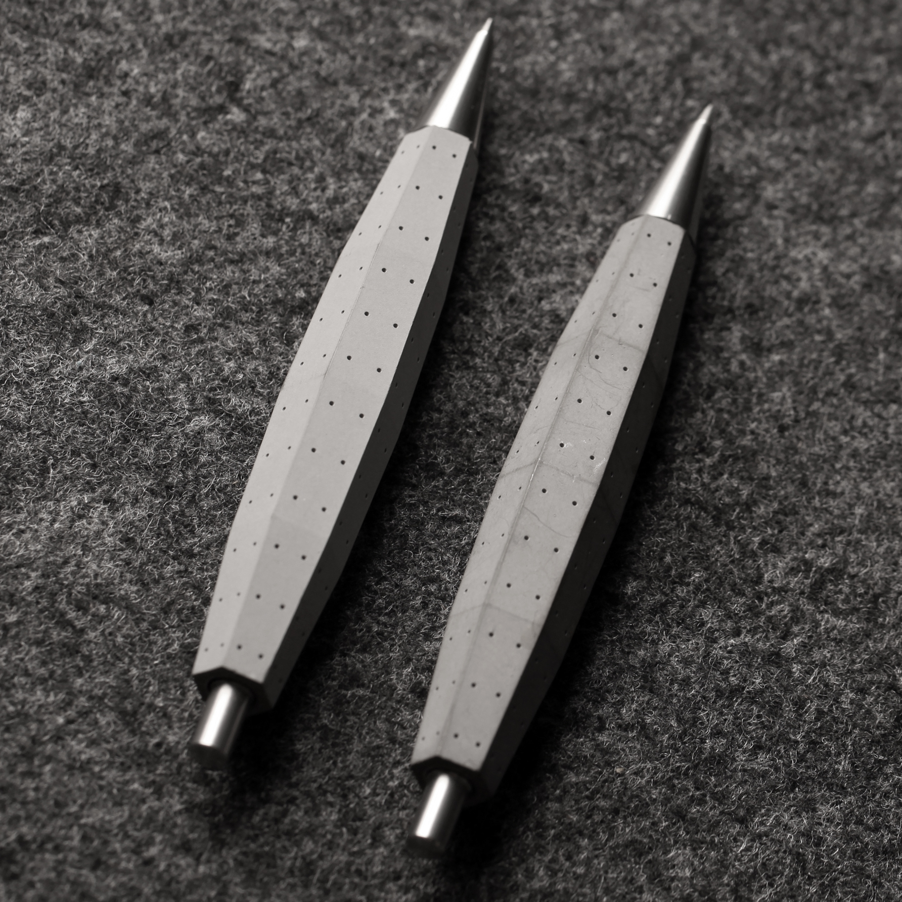 / 清水模系列 / 新品,筆桿上的面積,模擬袖珍縮小的水泥模板去製造三維立體曲面,連分割線和鑽孔都清晰可見。