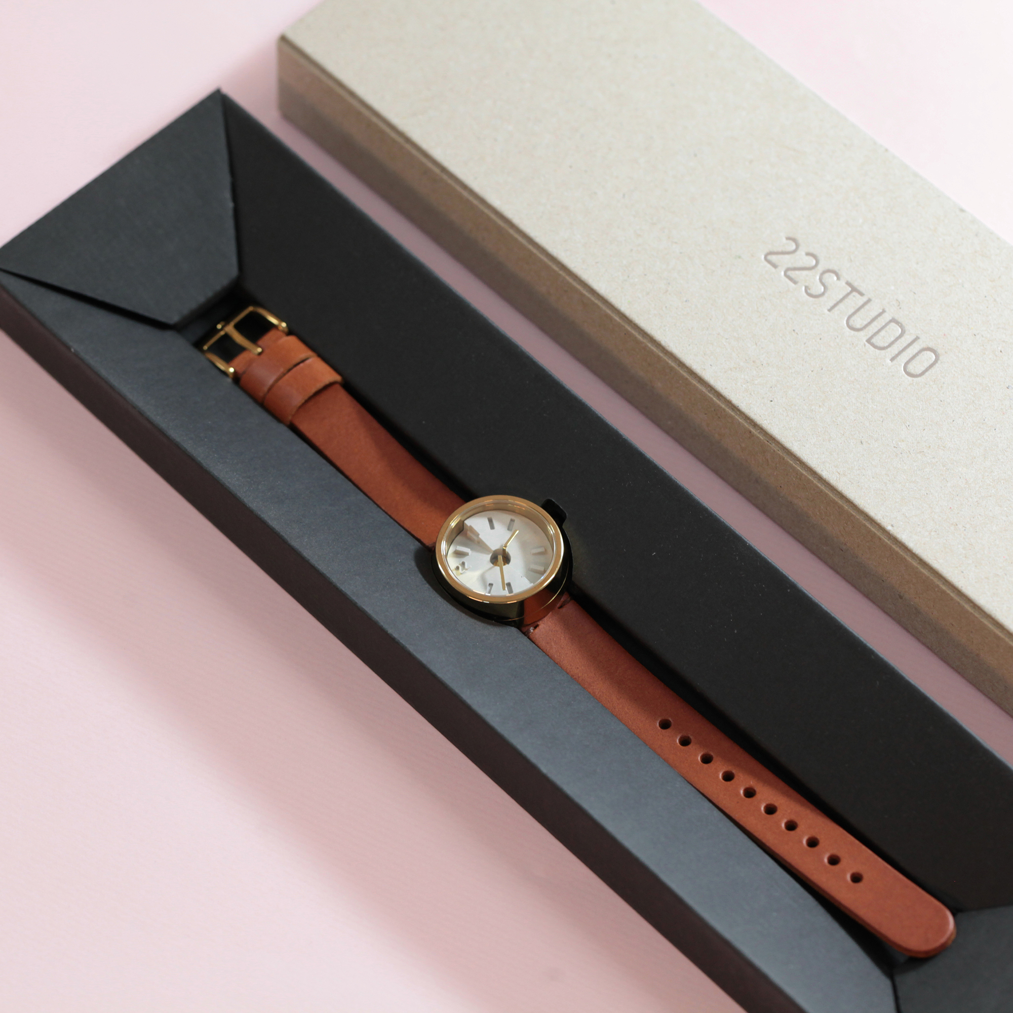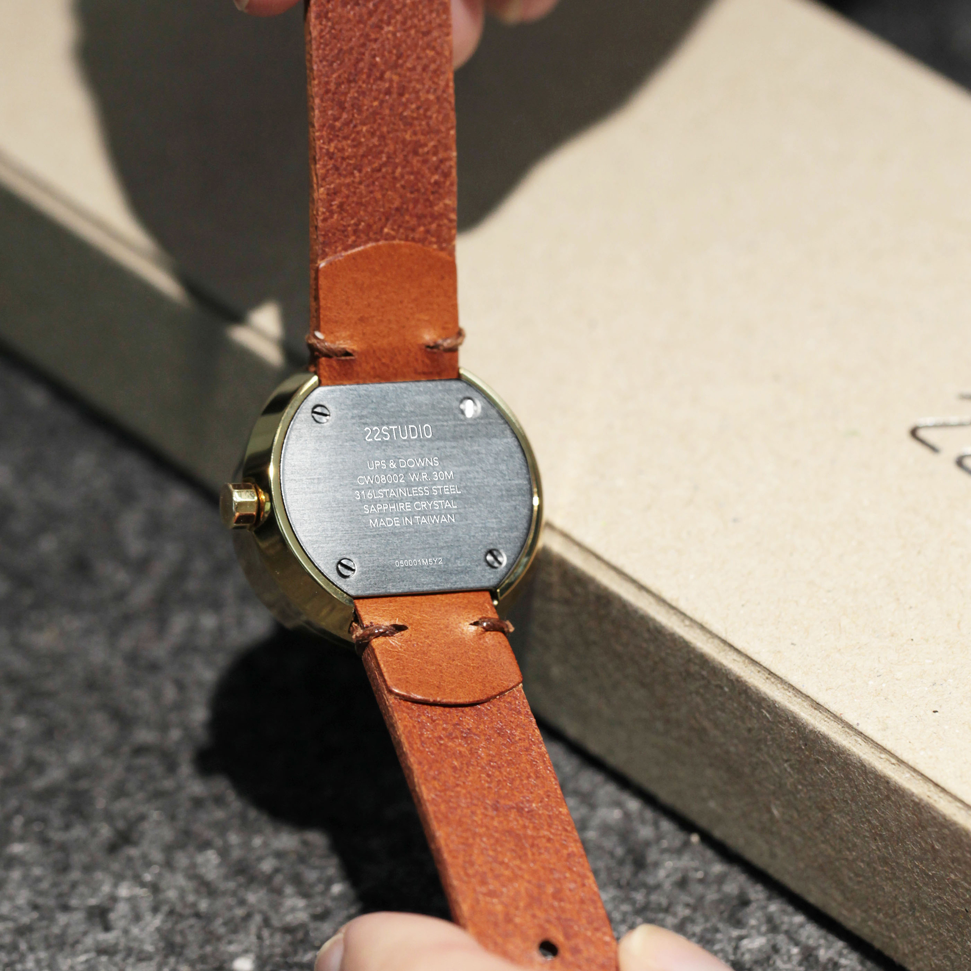 我們手工製作每一只水泥錶盤,因為水泥是最誠實的創作,灌模、脫模,就是完成品,無法掩飾或修補。我們慎選合作夥伴,每個零件供應商都是我們經挑細選的優質廠商,日本星辰石英機芯、316醫療級不鏽鋼錶殼、環保無鉛黃銅錶冠、藍寶石玻璃鏡面、手工植鞣革錶帶,再交由台南老師傅細心組裝。每一只22STUDIO的腕錶都是時間與雙手的產物,希望也是妳手腕上的信物,真實做自己,永遠優雅前進。