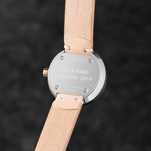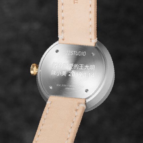 即日起至3月10日前於 22STUDIO 官方網站購買任一款手錶或指定書寫工具款項,我們就免費幫你將心中的祝福化作永恆印記在產品上,不論是一段祝福的文字、對方的姓名,或者是一段只有彼此知道的暗語,22STUDIO 將使用高解析度的雷射雕刻,將你想雕刻的文字符號刻於產品上。